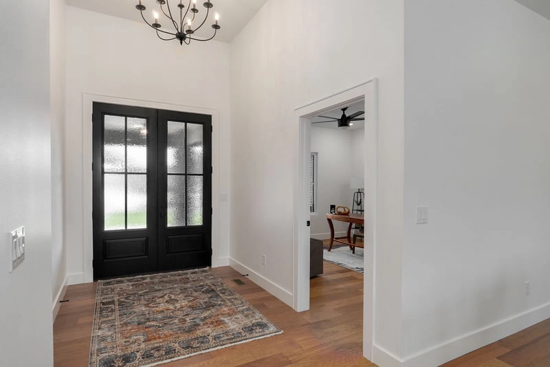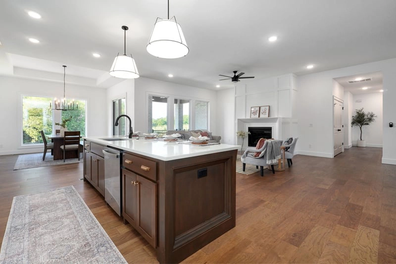 The Auburn Platinum Plan embodies the pinnacle of high-end spec homes in Southwest Missouri, offering exceptional space, premium lots, and elevated Platinum Standard finishes. The Auburn’s exterior impresses with a tall roof, glass top panel garage doors, and a double front door entry. Inside, two ensuite bedrooms with full bathrooms and large closets provide privacy and comfort, while 8-foot interior doors, detailed millwork, and engineered hardwood throughout the main level add luxury.